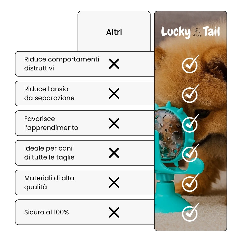 Questo gioco trasforma il momento della merenda in un’esperienza stimolante, progettata per stimolare la mente del tuo cane.