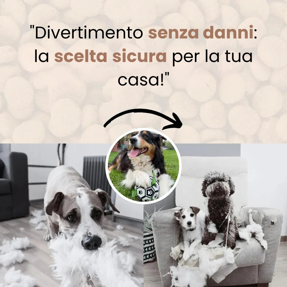 Il nostro giocattolo a forma di palla è progettato per essere ultra resistente, ideale anche per i morsi più energici dei cani di tutte le taglie.