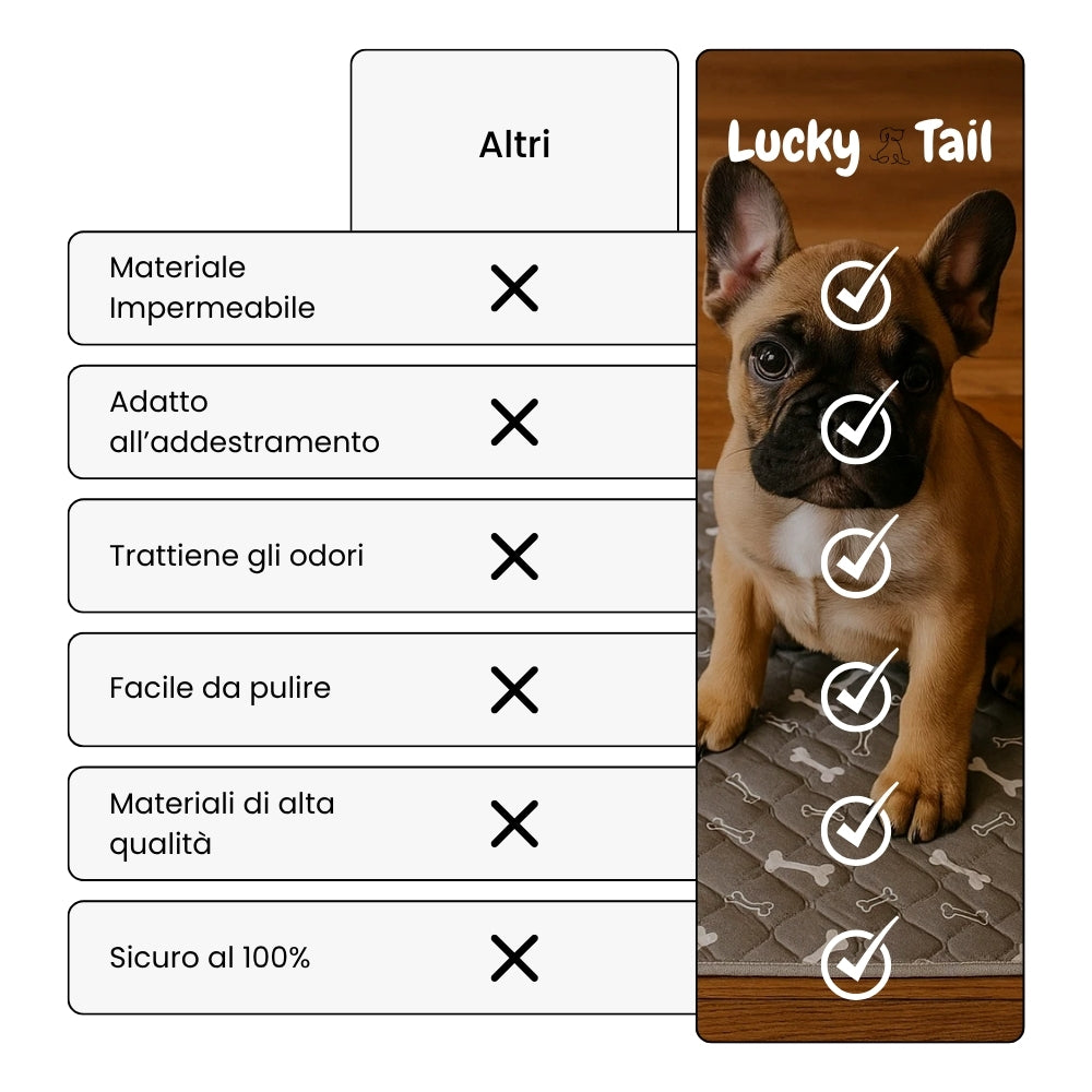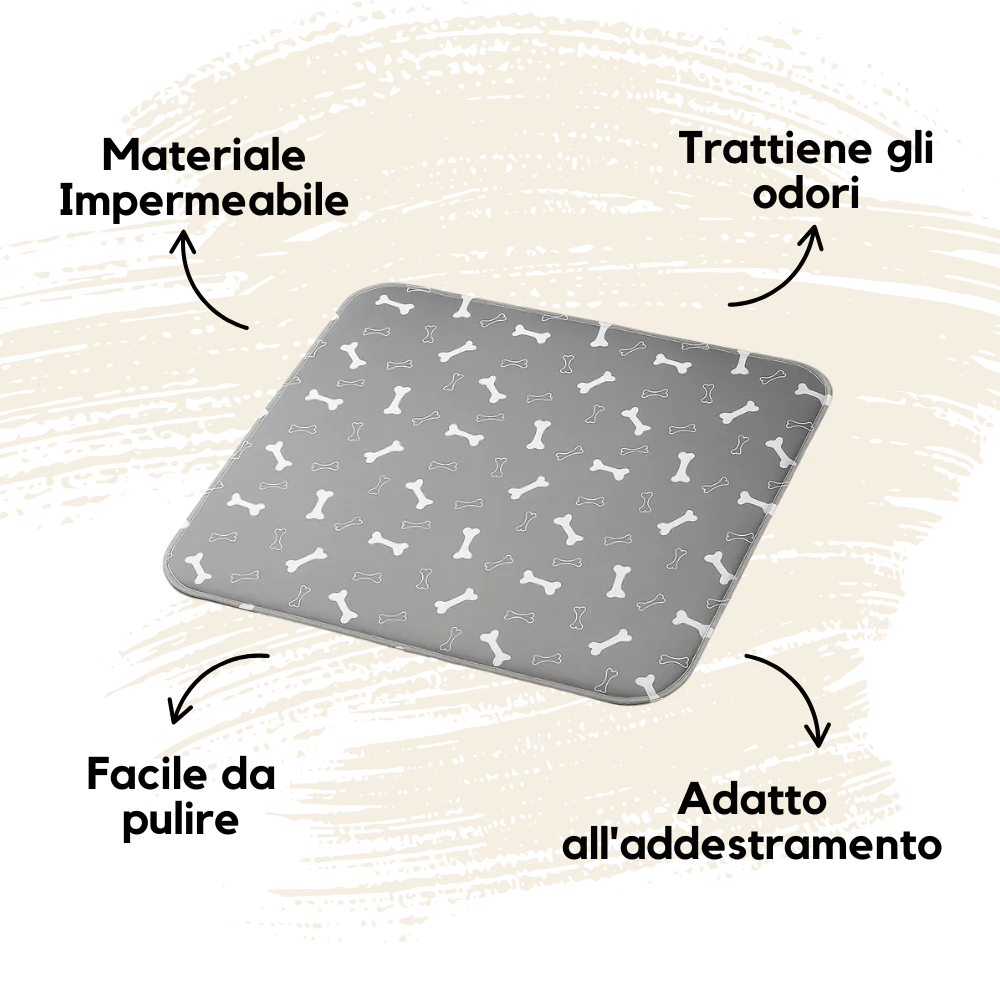 Il nostro tappetino è leggero, compatto e riutilizzabile, rendendo l’addestramento dei cuccioli più ordinato, rapido e senza odori sgradevoli.
